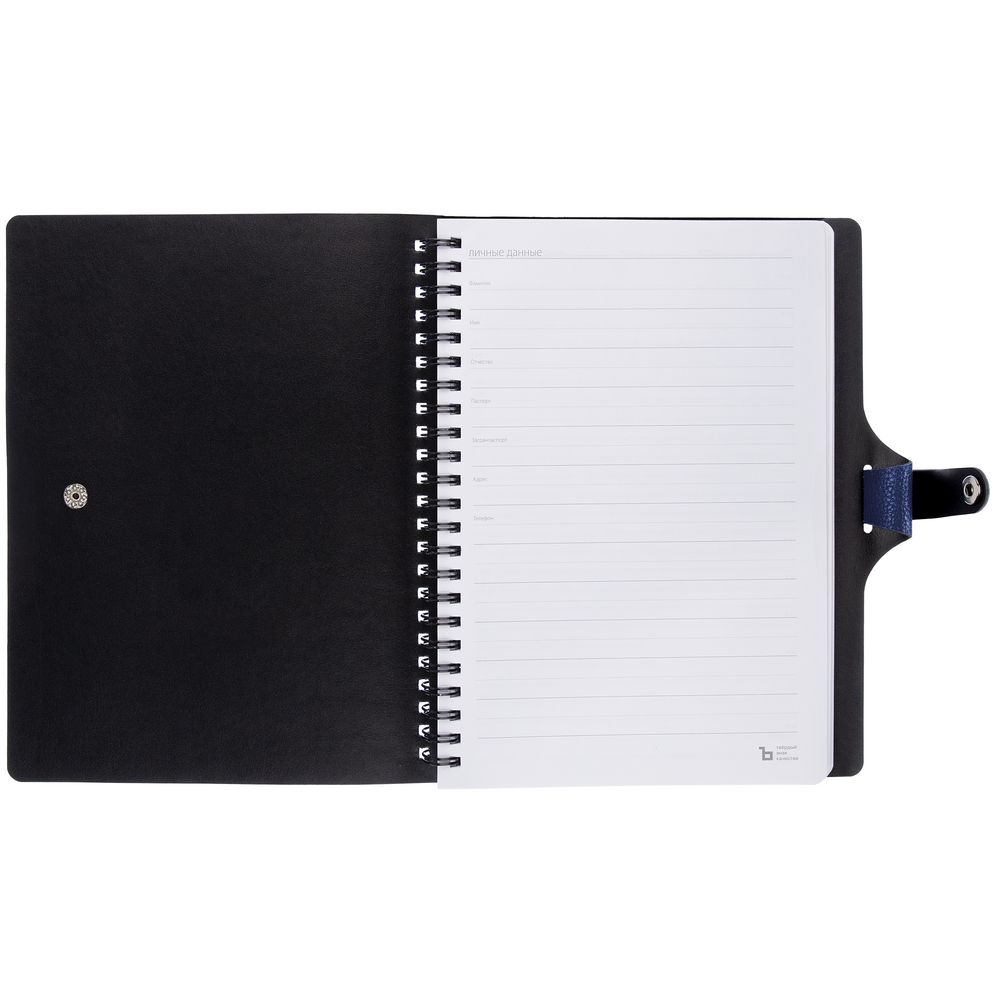 Ежедневник с гибкой обложкой, выполнен из материалов La Fite, синий НН и Waltz черный АА.
