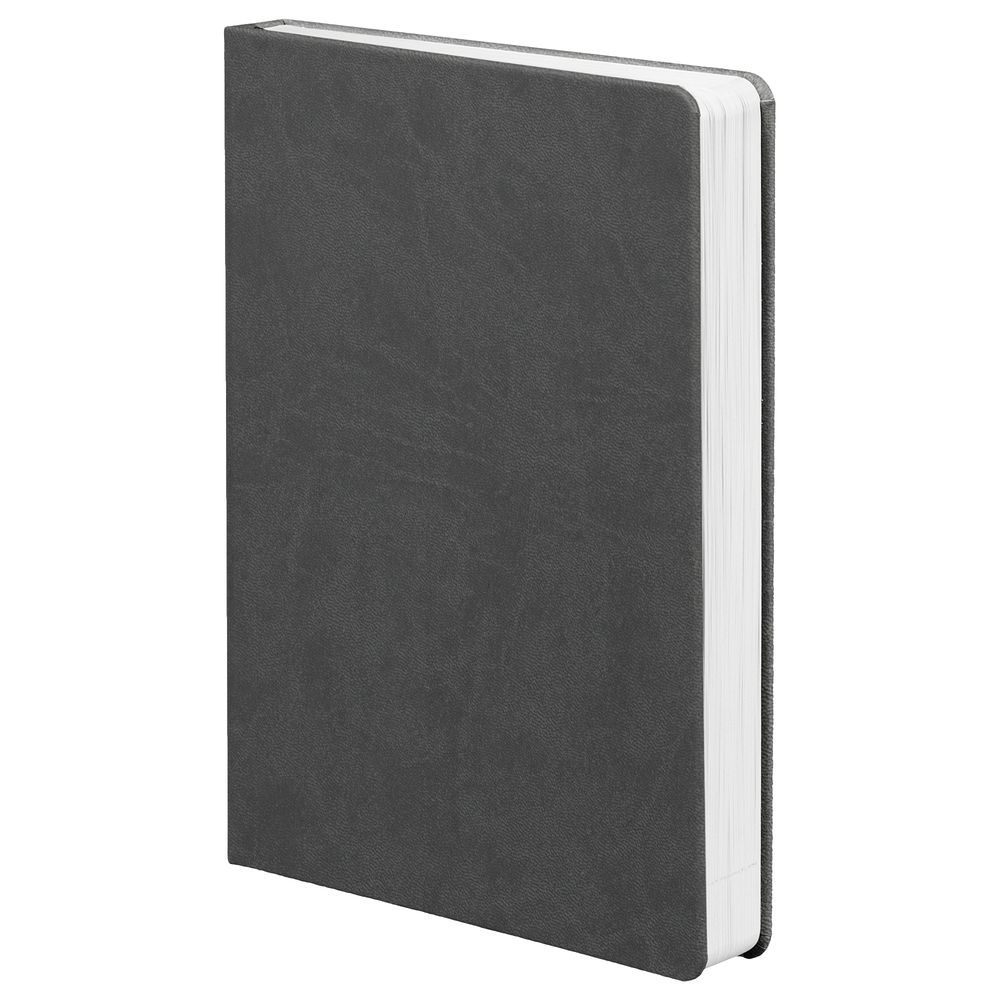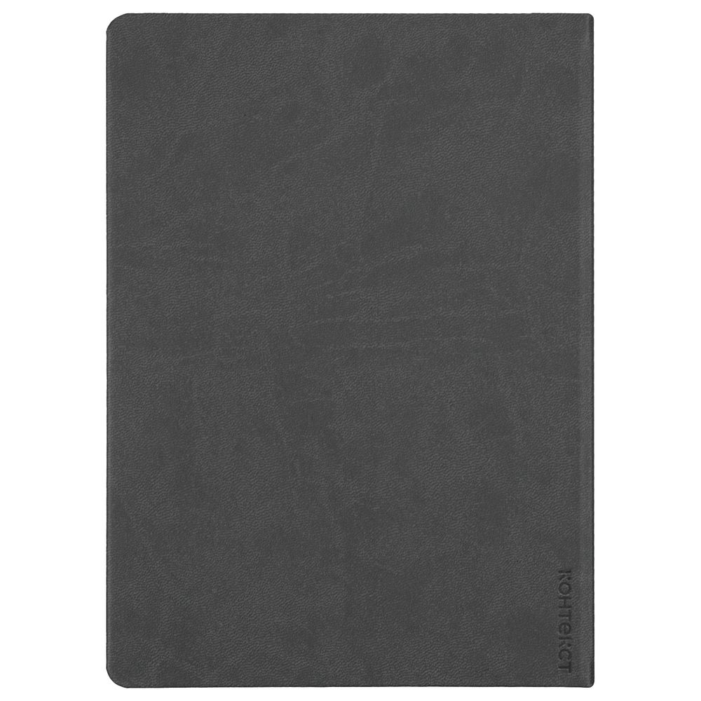 Ежедневник с твердой обложкой, выполнен из материала Latte, темно-серый ЕЕ, дополнен ляссе в цвет обложки.