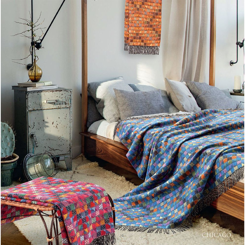 Плед Chicago с геометрическим узором, который имитирует лоскутное шитье и создает ностальгическое настроение, добавляя этнические нотки в окружающее пространство. Благодаря сдержанной цветовой гамме его достаточно легко вписать практически в любой интерьер. Выполнен из мягкого и нежного хлопка и украшен бахромой с двух сторон.