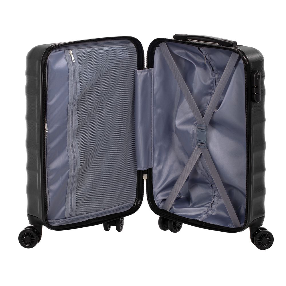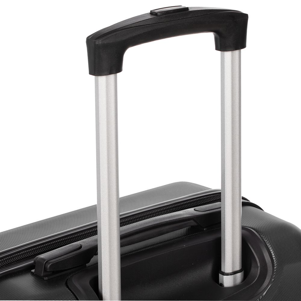 Для изготовления корпуса применяется прочный АБС-пластик последнего поколения. Специальные ребра жесткости повышают прочность конструкции и помогают нивелировать последствия удара при падении или другом механическом воздействии, а фактурная поверхность выполняет не только декоративную функцию, но и защищает чемодан от царапин.