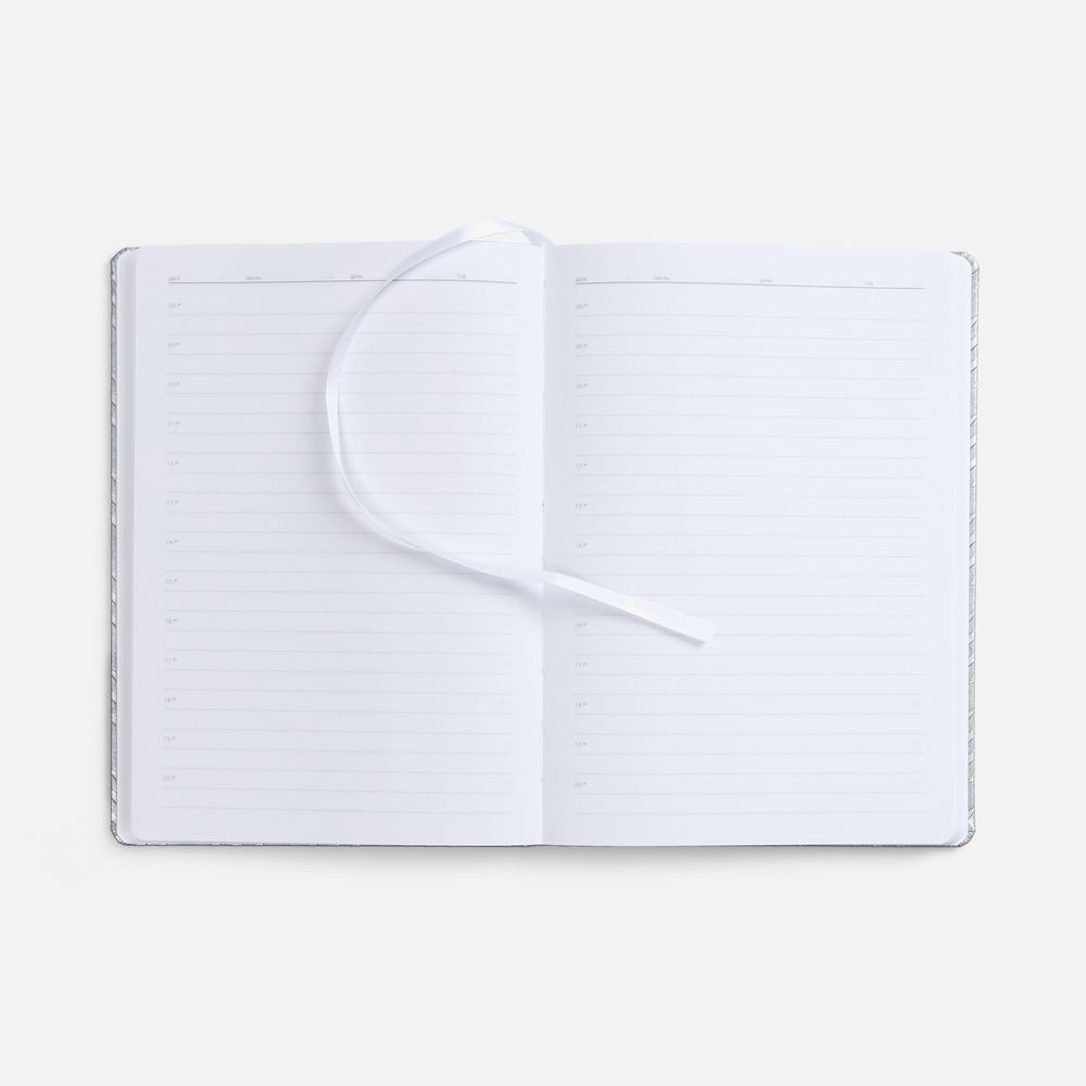 Ежедневник с твердой обложкой, выполнен из материала Waltz, серебро.