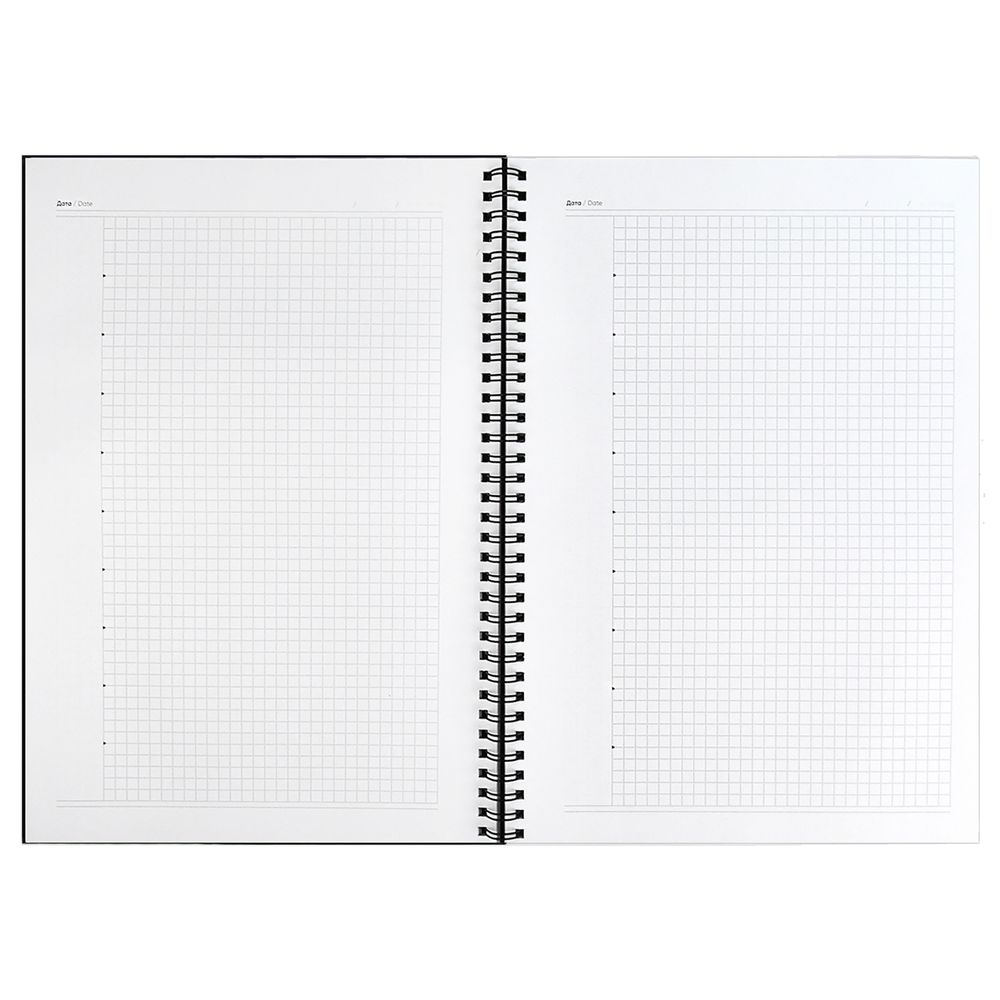 Ежедневник с интегральным переплетом, гибкой обложкой и обстрочкой по периметру на открытой пружине.