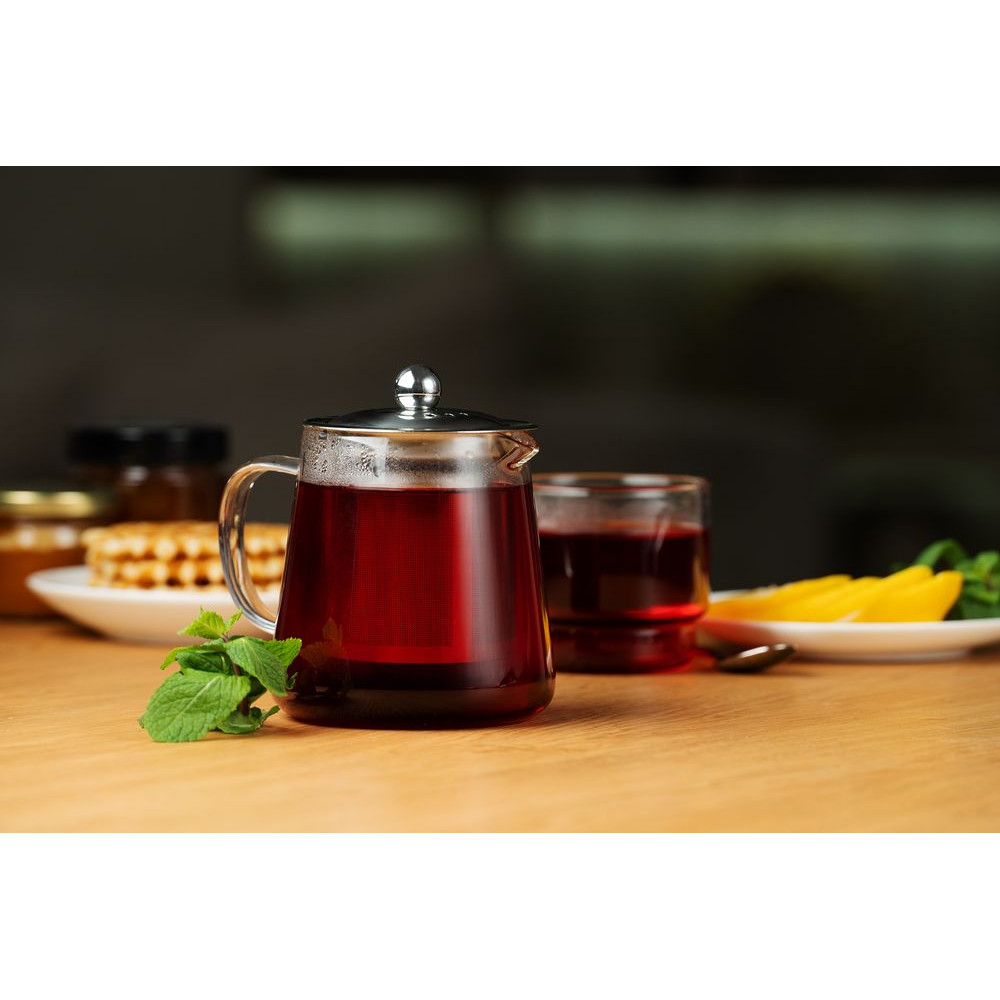 Чайник Apex с металлической вставкой-фильтром подходит для заваривания традиционного, травяного или фруктового чая.Стеклянный чайник с ситечком и крышкой из металла.
